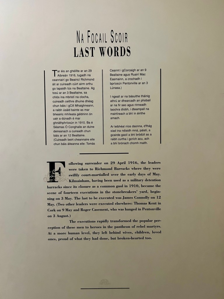 Şapelden sonra üst kattaki koridorda bağımsızlık bildirgesini imzalayan isimlerin hikâyeleri, Plunkett çiftinin vedalaşması dahil tüm ayaklanma liderlilerinin hikayesi kısaca anlatılıyor; hücrelerinin aynı koridor üzerinde yan yana olması, mekânın hafızasını daha görünür kılıyor.