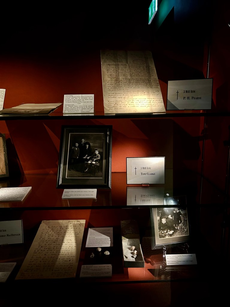 Rehberli turun ardından müze bölümünde kalıcı ve geçici sergiler Kilmainham deneyimini tamamlıyor. Müzenin kalıcı sergisi, cezaevinin sosyal ve siyasal tarihini üç katman üzerinden anlatıyor. Zemin katta hikâye “sıradan mahkûm” perspektifinden ilerliyor: şiddet suçlarından bir bahçeden elma çalmaya kadar uzanan suç kayıtları; 1842’de Avustralya’ya gönderilen John Sheahan’ın eşyalarını taşıdığı küçük ahşap kutu; mahkûm fotoğrafları için kullanılan Viktorya dönemine ait Gandolfi kamera. Birinci katta 1798 isyanından 1924’te İç Savaş’ın sonuna uzanan siyasal tarih yer alıyor; Robert Emmet’in 1803 tarihli bildirisi, Charles Stewart Parnell’in son mektubu ve Michael Collins’in 1922’deki suikastının ardından üzerinden çıkan eşyalar sergileniyor. “Last Words” bölümünde ise 1916’da Kilmainham’da idam edilen 14 liderin son mektupları ve kişisel eşyaları bulunuyor. En üst kat, 1960’larda cezaevini yıkımdan kurtaran gönüllülerin restorasyon sürecini anlatıyor.