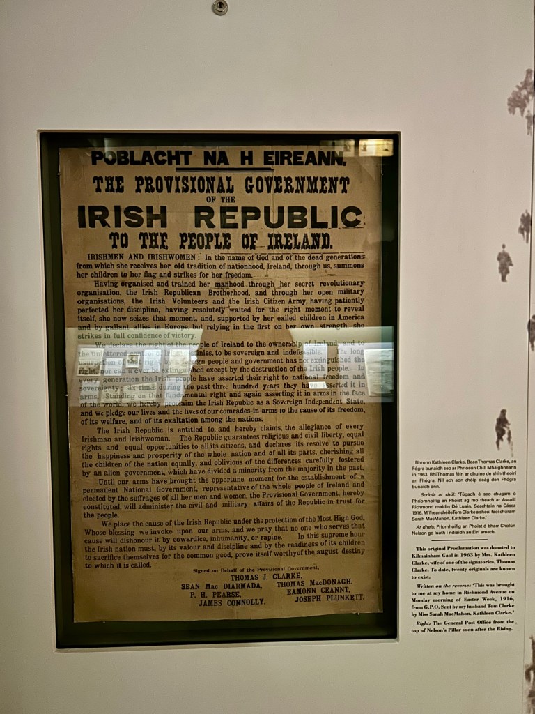 Ziyaretim yağmurlu ve soğuk bir Dublin gününe denk geldi. Günün son rehberli turuna bilet almıştım; saat dört ile beş arasındaydı ve yaklaşık bir saat sürdü. Rehberli turun ardından müze kısmı açık kalıyor; isteyenler kendi hızında gezmeye devam edebiliyor. Ziyaret temposu acele ettirmiyor. Rehberlerin saatlerini önceden kontrol edip özellikle hikâye anlatıcılığındaki ustalığı ile söz konusu deneyimi başka bir seviyeye taşıyan Alan’ın turuna denk gelmenizi tavsiye ederim. Anlatımı kronolojik, sade ve net; yoğun tarihsel bilgiye rağmen didaktikleşmeden ilerliyor.